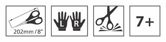 Stainless steel blades. Hygienic polypropylene handle. Asymmetrical handles for easy grip & less hand fatigue. Low friction stainless steel orbital rivet. Superior cutting performance. Bent handle design keeps material flat while cutting, improve cutting accuracy.